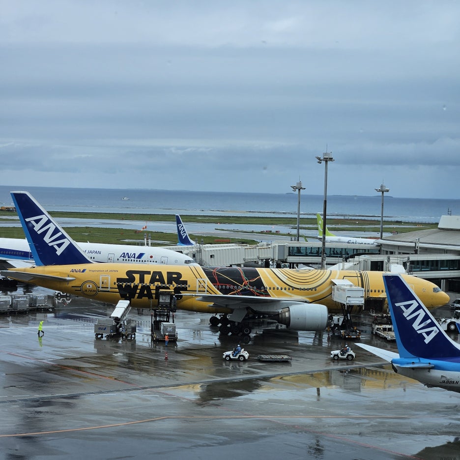 공항에서 상점들과 식당들 구경을 하고 ANA의 스타워즈 래핑 비행기도 보았다.