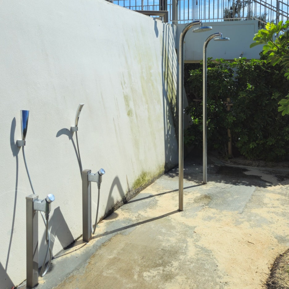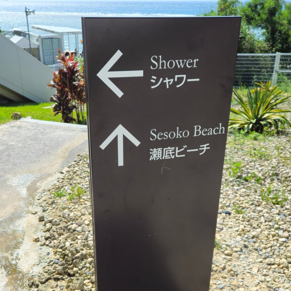 모래와 바닷물을 씻을 수 있는 샤워 부스가 있고, 이 앞을 지나면 세소코 비치로 통하는 호텔 문이 있다.