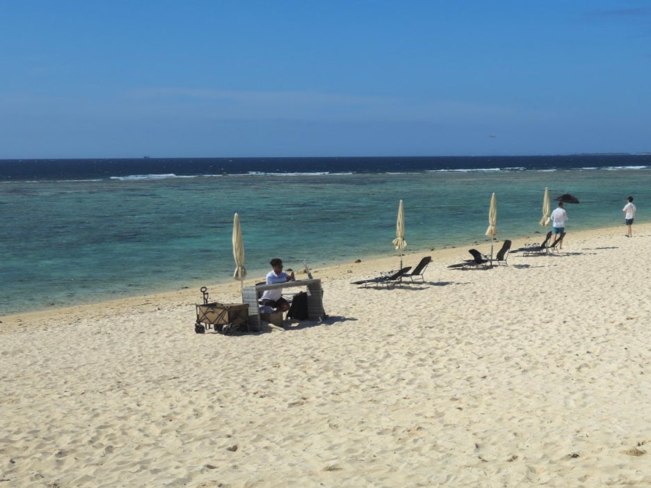 - 산호 가루로 이루어진 모래사장이라 모래가 부드러운 편이 아니다.