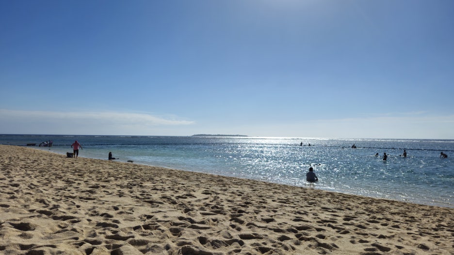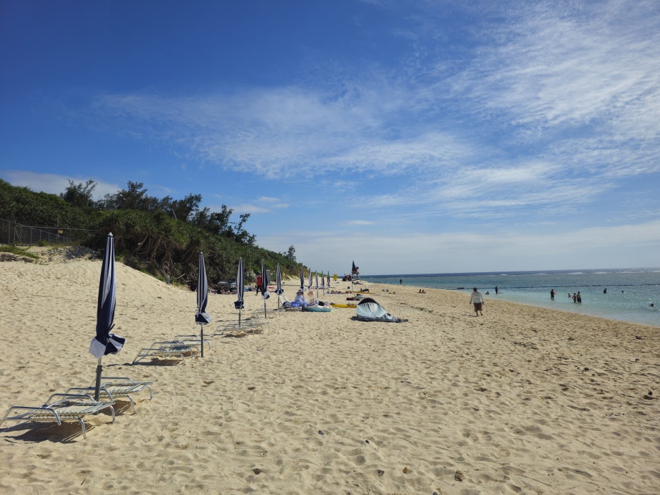 수영이 가능한 구역은 부표로 막혀진 구역 안에서만 가능하다. 경험상 오키나와의 대부분의 해변이 동일했다.