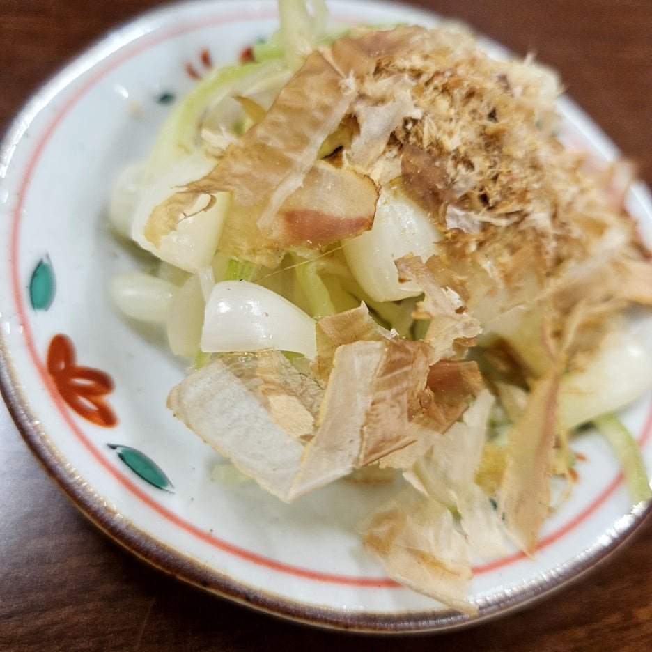 시마락교는 우리가 일식을 먹을 때 나오는 락교인데, 조금 더 긴 모양이었다. 그 위해 소금과 가츠오부시를 더한 모습이다. 그런데, 다른 심심한 것과 함께 먹는 반찬으로 먹기에는 괜찮으나, 기본적으로 너무 짜다. 짜다. 짜다.