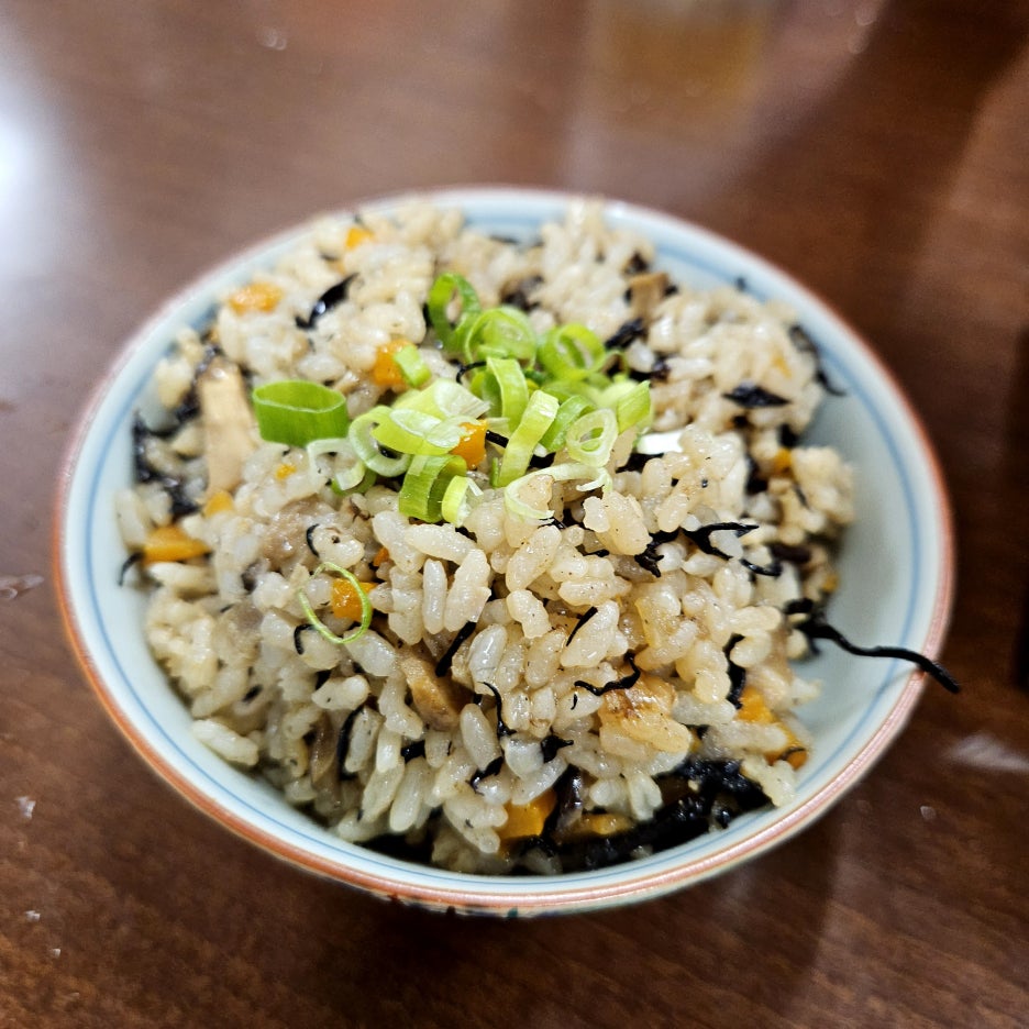 살짝 달달한 느낌이 드는 간장 베이스 양념에 볶아진 듯한 밥에 다양한 채소와 해초도 들어가 있어서, 아주 맛있게 먹었다.