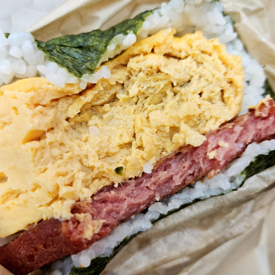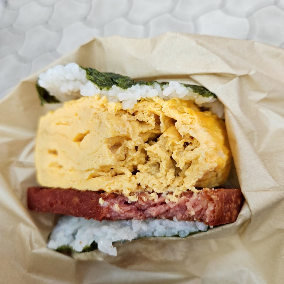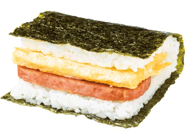 기본적으로는 스팸과 달걀말이를 김과 밥에 싸는 먹는 주먹밥의 형태인데, 최근에는 다양한 토핑과 함께 먹는 형태로 발전을 해온 듯하다. 새우튀김과 같은 추가 재료를 넣어서 더 푸짐하게 먹기도 하고, 달걀말이에 명란젓 같은 다양한 재료를 넣어 더 맛있게도 만든다.