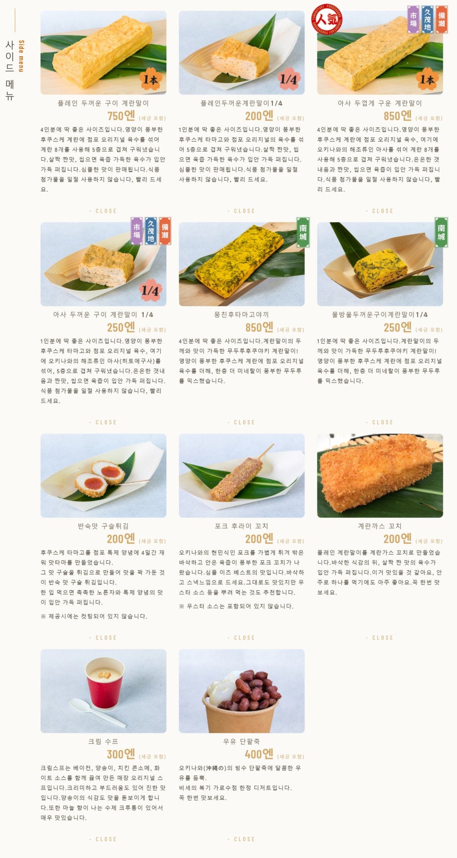 ▶ 두꺼운 포크 다마고 오니기리 : 400엔