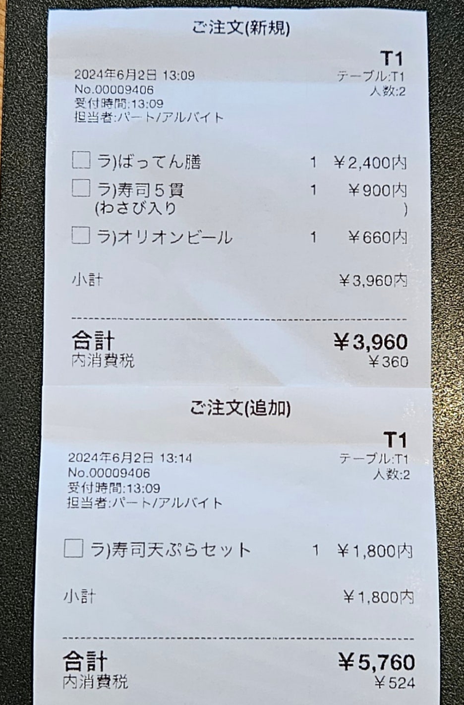 총 5,760엔