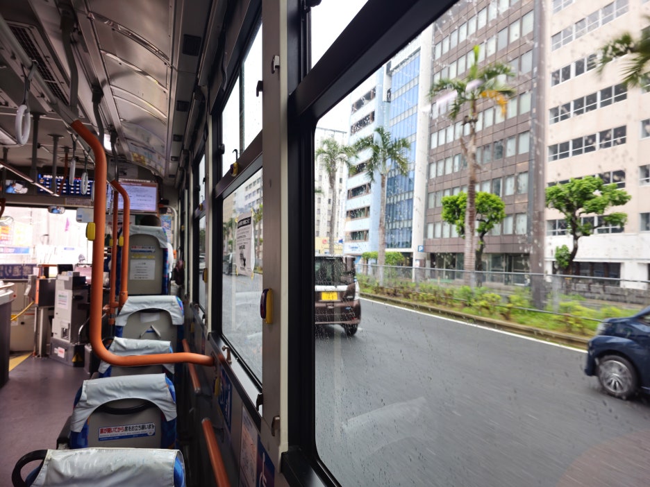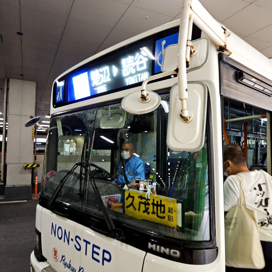 나하시의 버스는 다른 일본의 도시들과는 달리 모두 앞문으로 타고 같은 앞문으로 내리는 시스템이다.