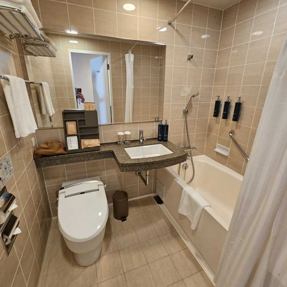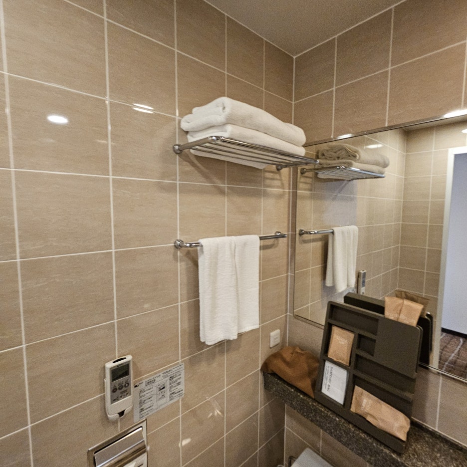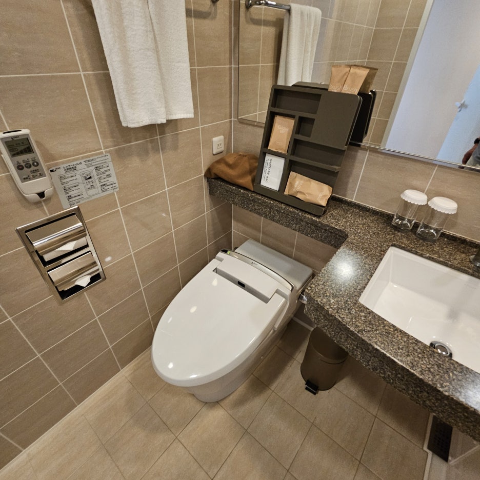 화장실은 일본 비즈니스호텔보다는 살짝 넓은 크기. 그래도 아주 콤팩트하다.