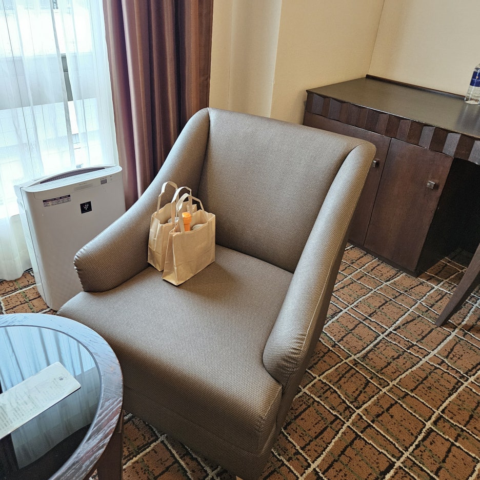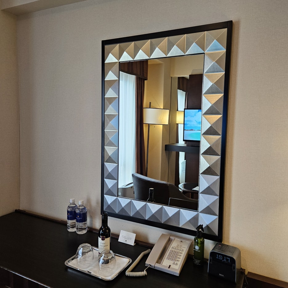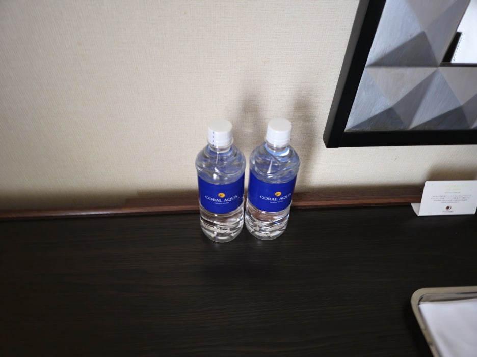 일본에는 물을 제공하지 않는 호텔들이 많은데, 그래도 힐튼 계열이라 매일 2개씩 생수를 제공해 주었다.