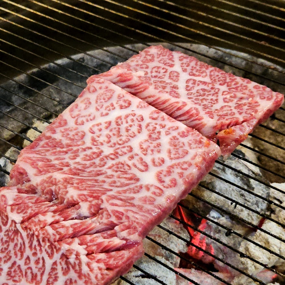 펼쳐 보니, 눈이 돌아가는 마블링의 자태. 얼른 불판에 올린다.