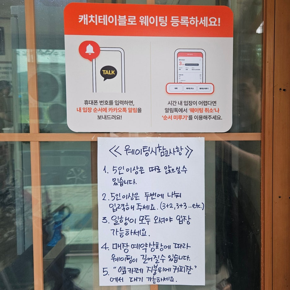 식사시간에는 꽤 웨이팅이 있는 곳이다. 캐치 테이블로 웨이팅이 가능하다. 우리도 앞에 3팀이 있어 대기를 한 후 자리를 안내받을 수 있었다. 직원분들이 친절하게 안내를 해주셔서 기분이 좋아졌다.