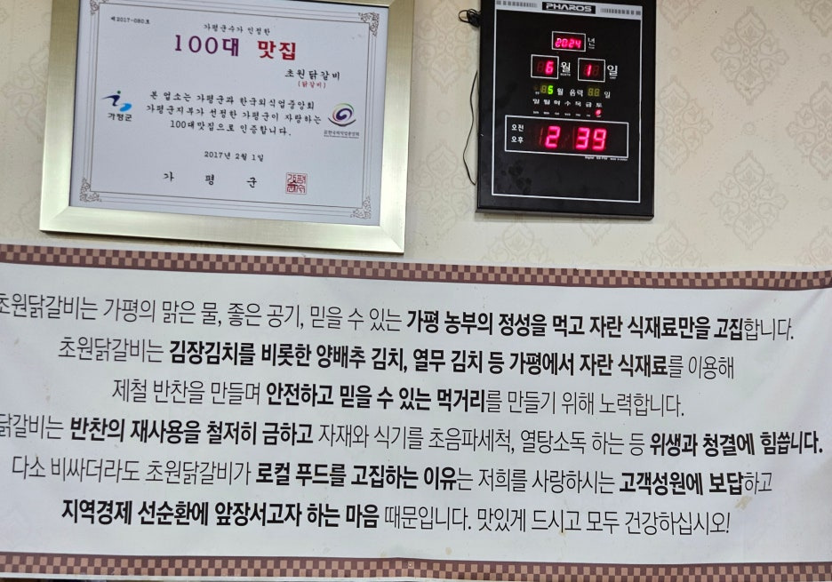 가평 군수가 인정한 100대 맛집. 가평에 얼마나 많은 음식점이 있을지는 모르지만, 100등 안에 들어간다고. 웬만하면 100등 안에 들지 않을까 싶기도 하지만.