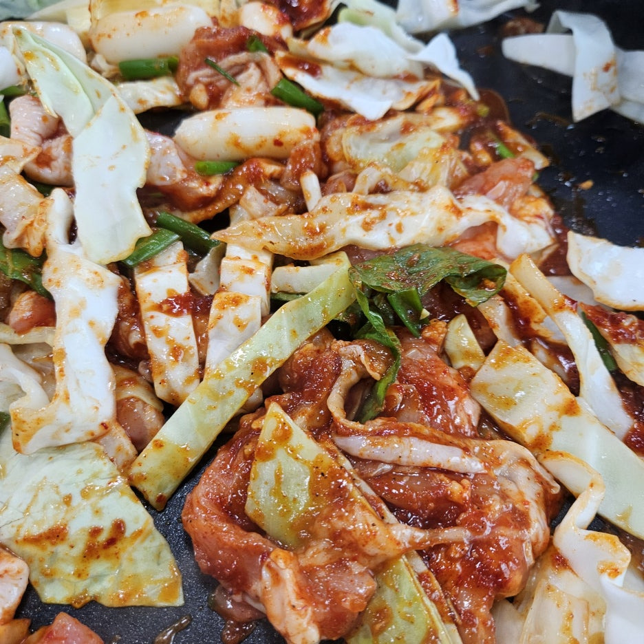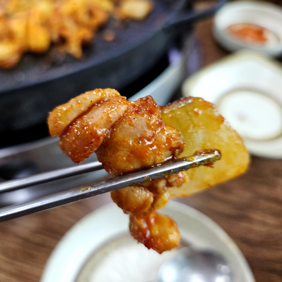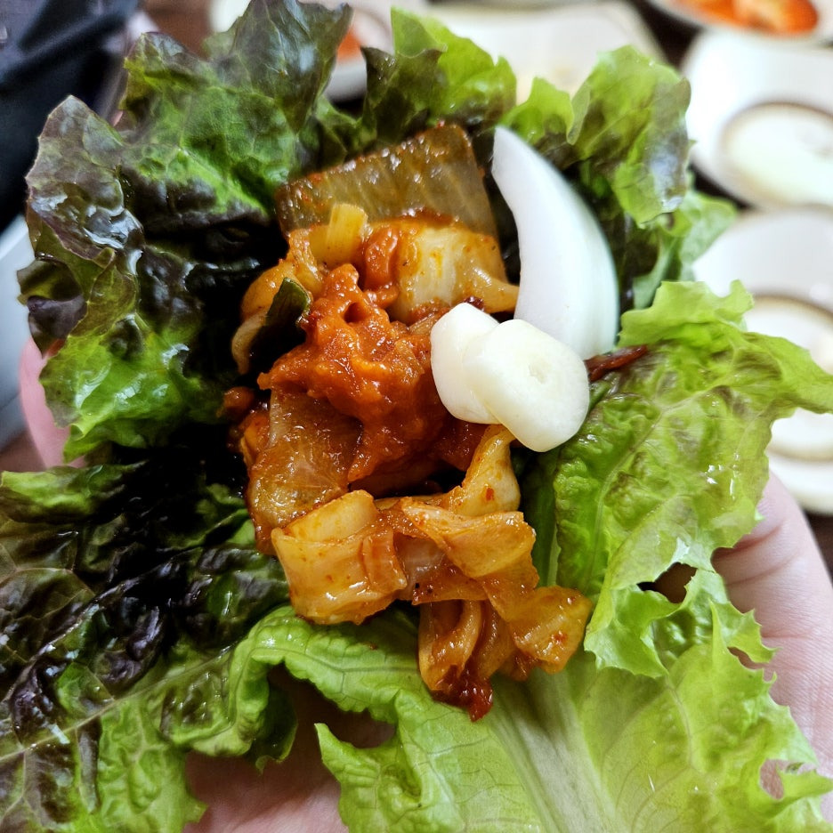 육질은 쫀득하고 양념도 과하지 않고 좋다. 양배추와 먹어도 좋고 양파와 먹어도 훌륭하다.