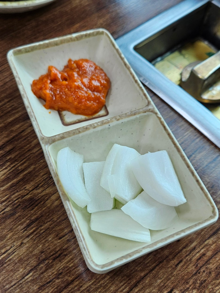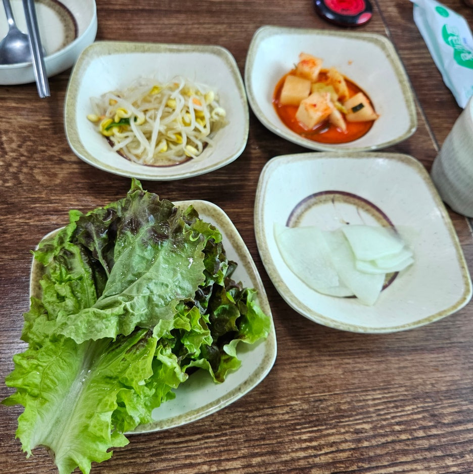 기본 찬은 심플하다. 콩나물, 쌈무, 깍두기, 상추, 양파가 전부. 단순하지만, 이후에 닭갈비와 먹다 보면 손이 자주 가는 반찬들이었다.