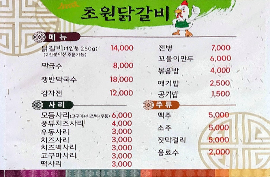 메뉴는 간단하다. 닭갈비와 막국수류, 전병 등이 주로 주문을 하는 메뉴이다.