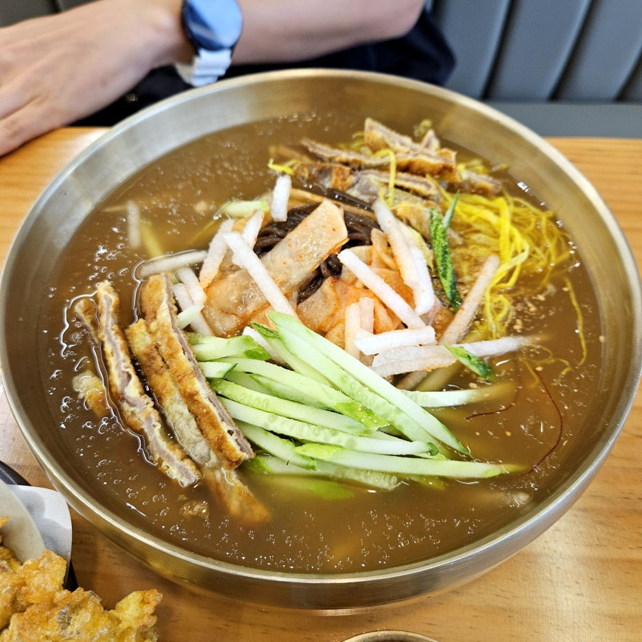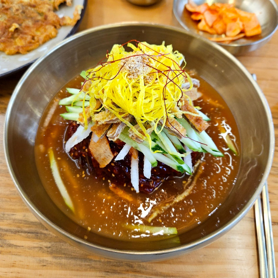 강한 맛이 나는 물 비빔도 나름 매력적이라 깔끔하게 잘 먹었다. 자극적인 맛을 좋아하는 사람이라면 물 비빔이 더 좋겠지만, 단백한 맛을 선호하는 나에게는 물냉면이 훨씬 나았다. 영원히 난 물냉면을 먹어야 하나 보다.