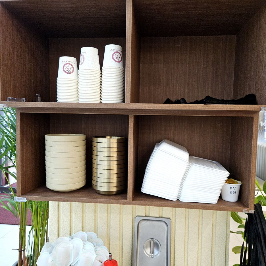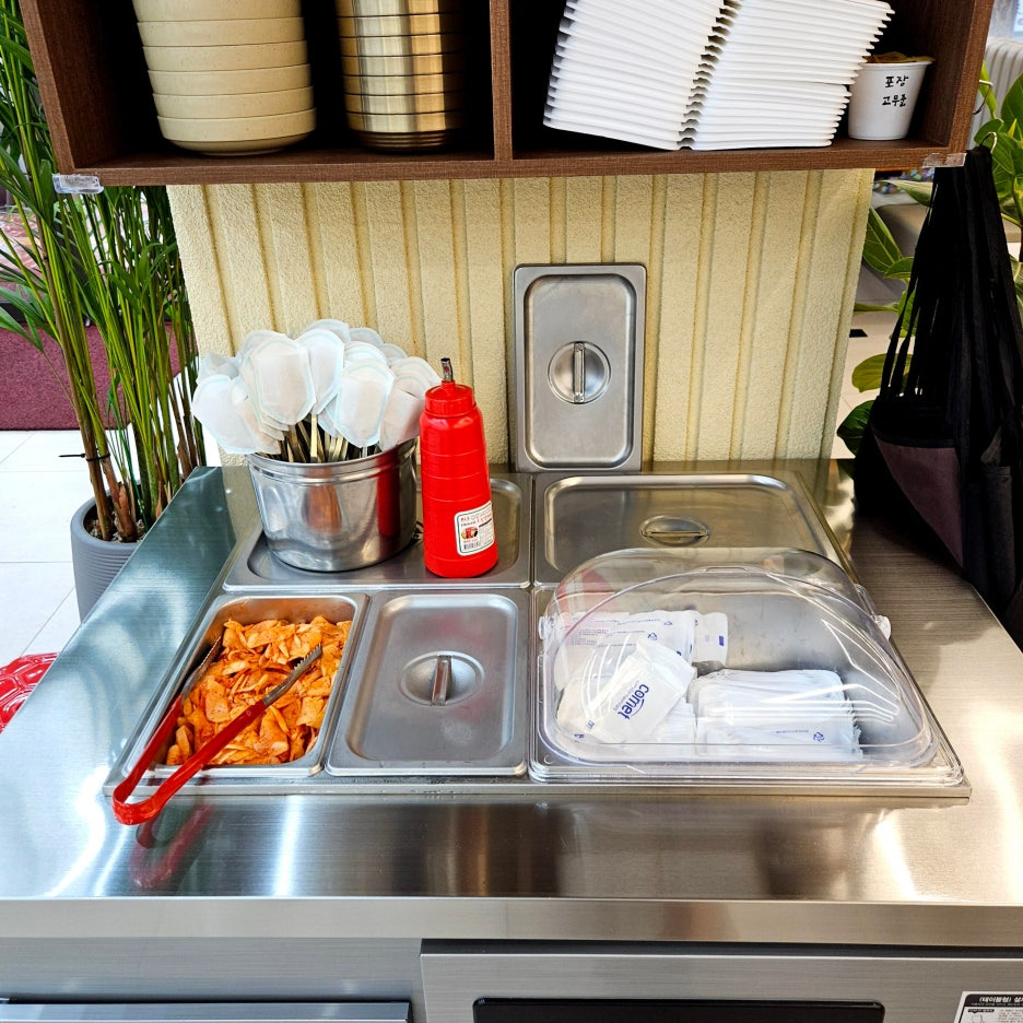 워낙 그런 손님들이 많은지, 한쪽 구석에는 셀프 바와 셀프 포장을 할 수 있는 곳이 있다. 무 절임도 조금 더 챙기면서, 남은 육전을 포장할 수 있었다.