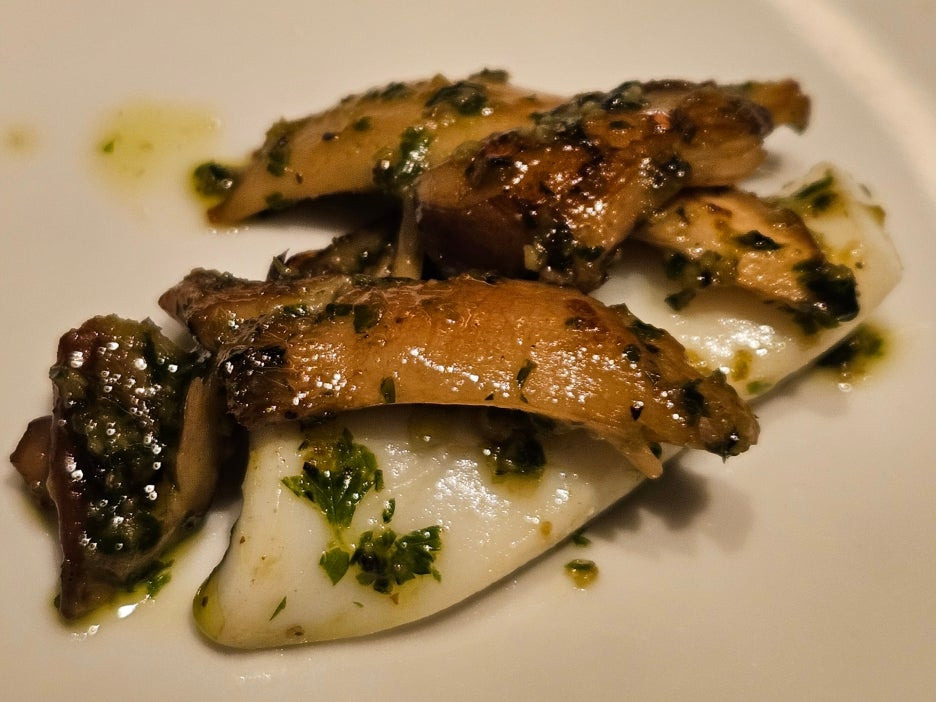 에스카르고 소스가 한치의 부드러운 식감과 잘 어울리는 듯하다. 버섯도 괜찮았다. 이런 풍의 음식을 경험해 보지 못한 터라 맛이 어떤지 말하기는 어렵지만, 와인과 잘 어울린다고 한다.