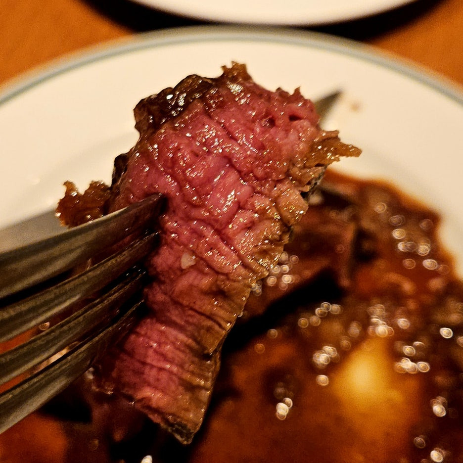 적절한 굽기가 아주 좋았고, 부드럽게 씹히는 느낌도 너무 좋다. 육즙이 나오는 부드러움에 겉은 살짝 바삭한 튀김옷. 아주 새로운 음식을 맛보게 되었다.