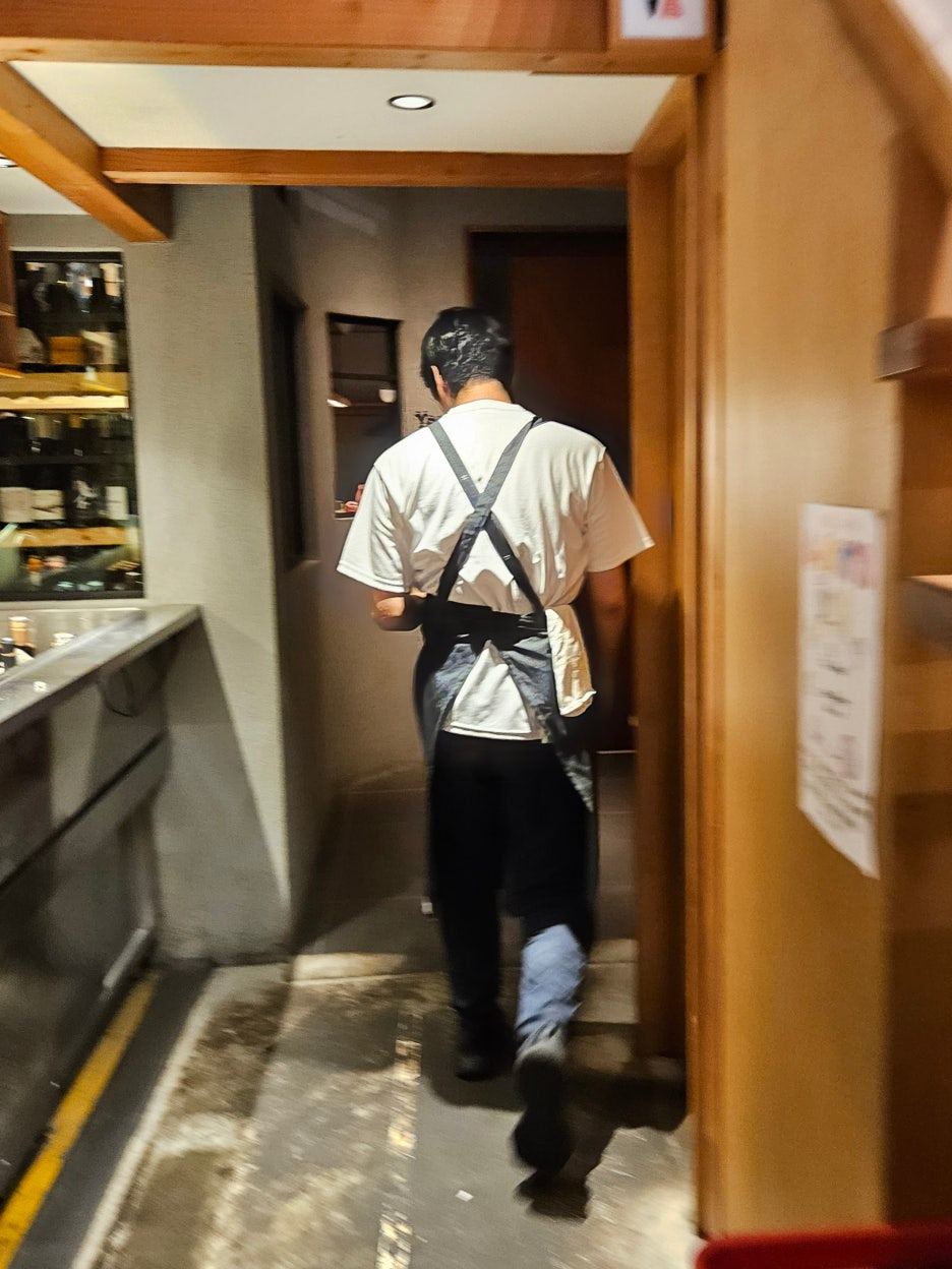 교자집의 문을 열고 들어가 계시는 직원분께 요르고에 왔다고 하니, 예약을 했는지 확인하고, 안내를 해주신다. 교자집의 가장 안쪽으로 들어가니, 요르고라고 적힌 작은 문이 있고, 그 안으로 멋진 분위기의 업장이 있었다.