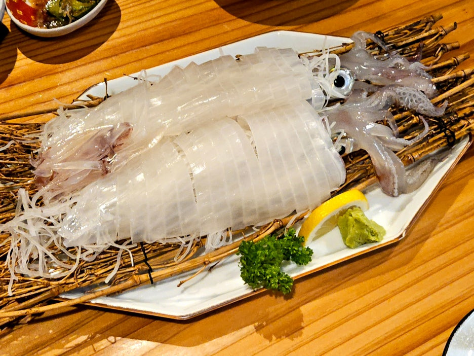저녁을 모츠나베로 거하게 먹고, 후쿠오카의 명물 중 하나인 이카이키츠쿠리 오징어회를 먹고 싶어 방문하였다. 사실 정확하게는 후쿠오카의 명물은 아니고, 근처 도시인 요부코의 명물이 오징어회이긴 하다.