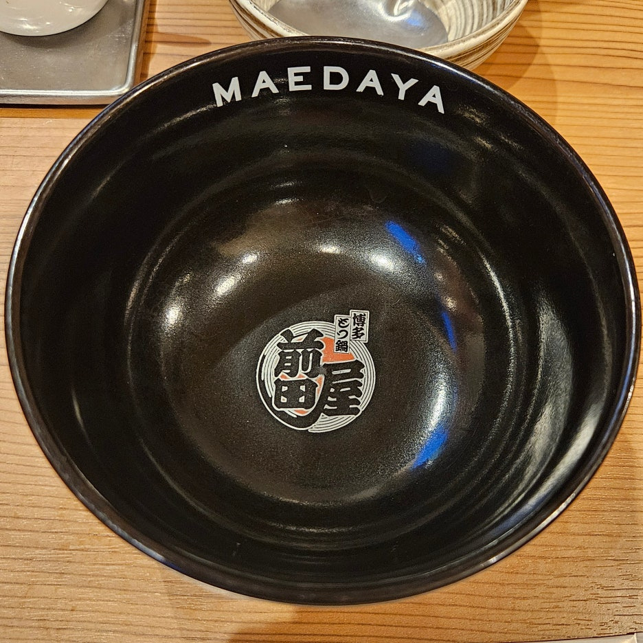 자리에는 이렇게 마에다야의 로고가 있는 앞 그릇이 있었고, 물수건에는 "모츠나베에, 품격을." 이라고 적혀 있다.