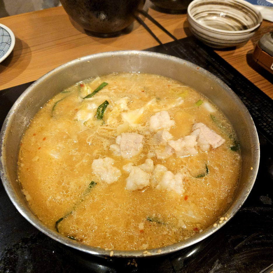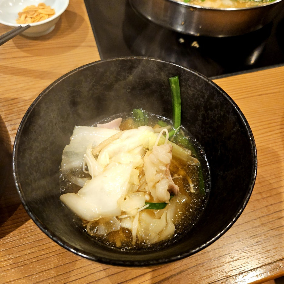 모양새와 향은 다른 곳에서 먹던 모츠나베와 크게 다르지는 않았다. 고소한 냄새와 대창으로 인해 기름진 육수. 그리고 잘 익은 양배추.