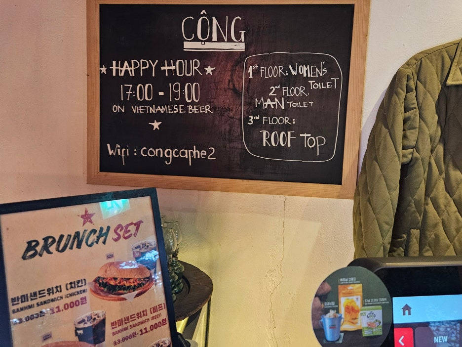 오후 5시부터 7시까지는 베트남 맥주를 저렴하게 파는 해피아워도 운영 중이고, 베트남식 카페다 보니 반미도 판매하고 있다.