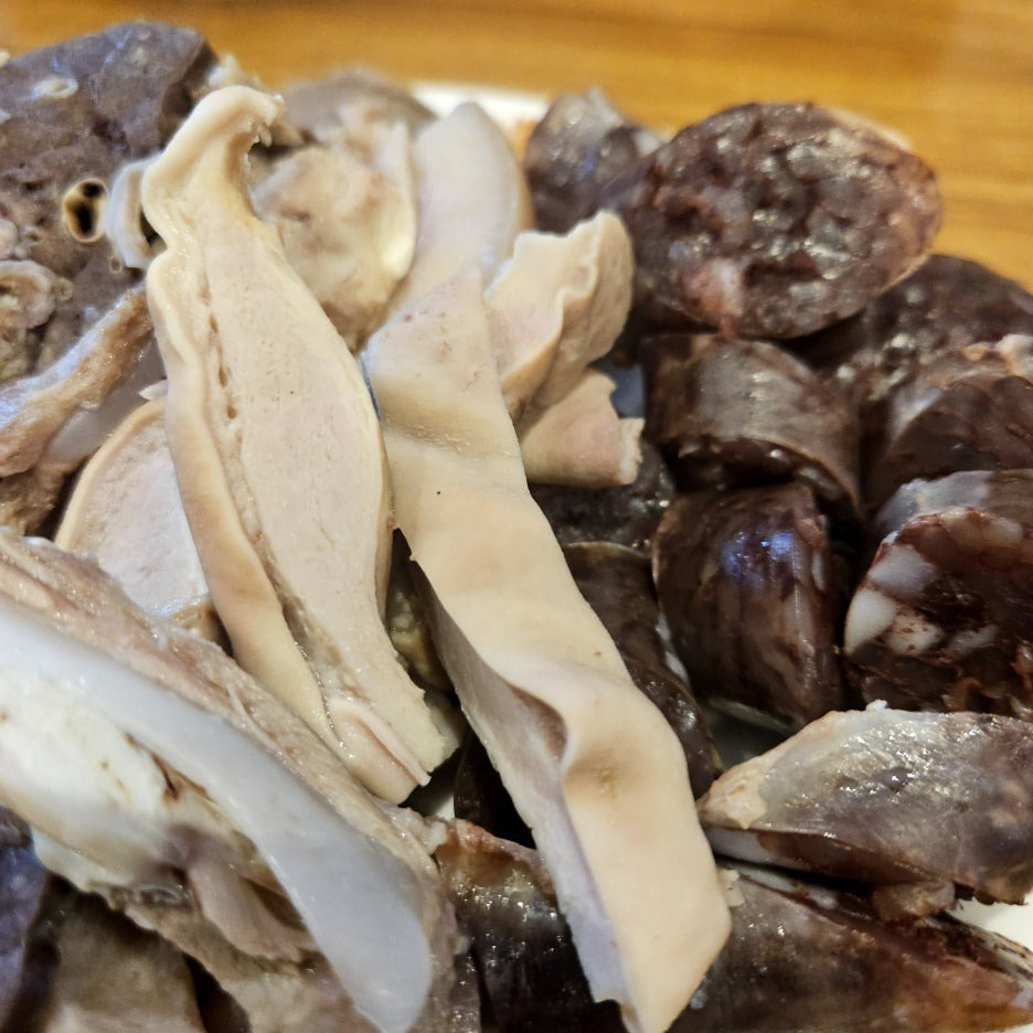 콩팥과 허파. 이외에도 돼지 곱창, 머릿고기 등이 있다.
