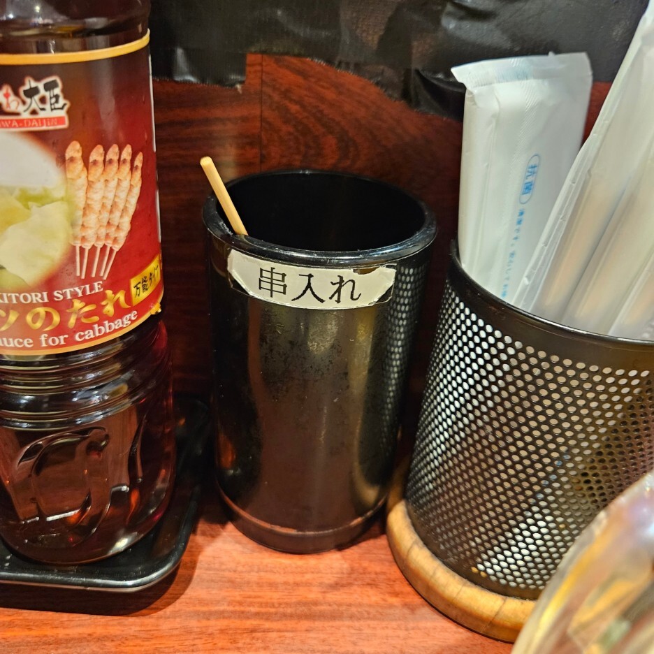 다먹은 꼬치는 저런 통에 넣으면 된다. 주문 시에도 저기에 다 먹은 꼬치를 넣어달라고 알려주셨다
