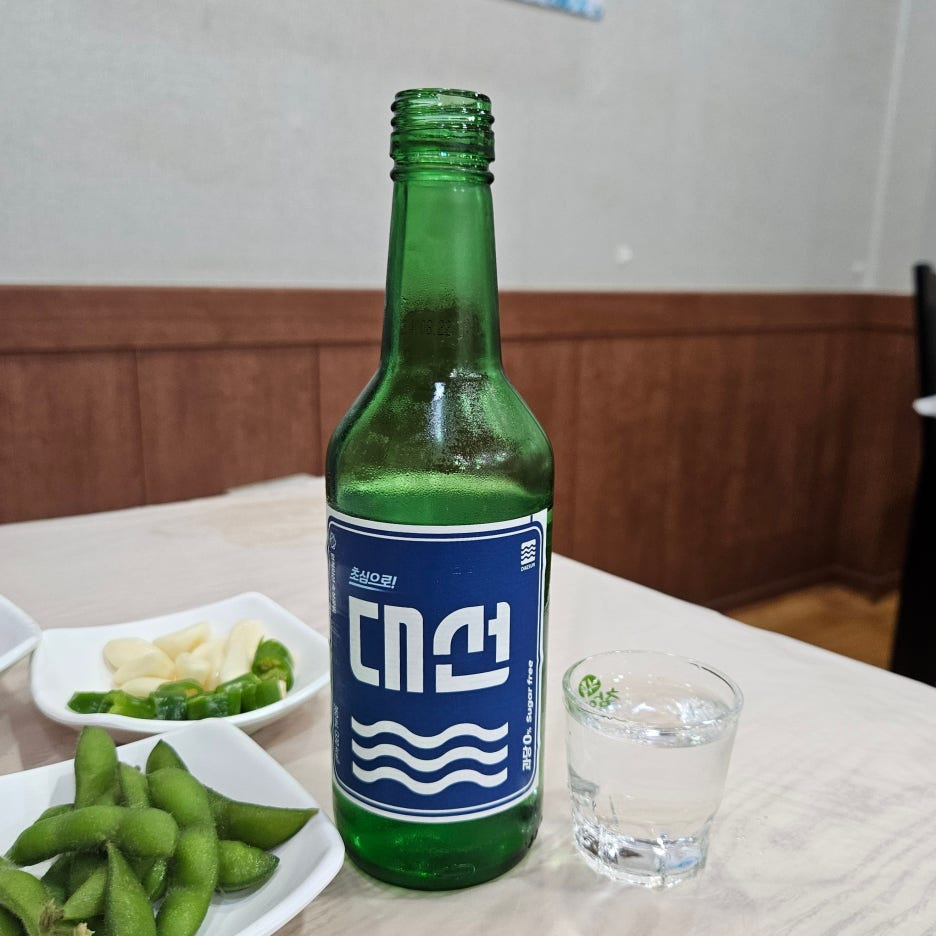 화려하거나 대단한 찬이 있는 것은 아니었다. 하지만, 메인 회가 나오기 전에 소주 한 잔과 적당히 즐기기 좋은 구성인듯하다. 그래서 주문한 대선.