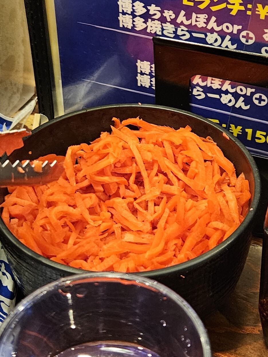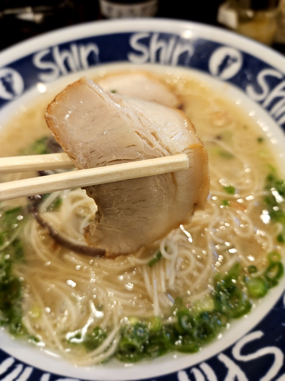 카타면이라 처음에는 씹히는 맛이 있다. 그런데 워낙 가느다란 면이라 먹으면서 시간이 좀 지나니, 금세 면이 다 익어버린다. 두 가지 느낌을 다 맛보려면 카타로 주문하는 것이 가장 좋은 것 같다. 이런 이유로 가급적 후쿠오카에서 얇은 면의 라멘을 먹게 된다면 카타면으로 주문하시길 추천드리는 것이다. 두 가지 식감을 다 느낄 수 있기에. 차슈와 멘마는 아주 평범하다. 차슈가 좀 더 부드럽고 맛있었으면 얼마나 좋았을까 싶다.