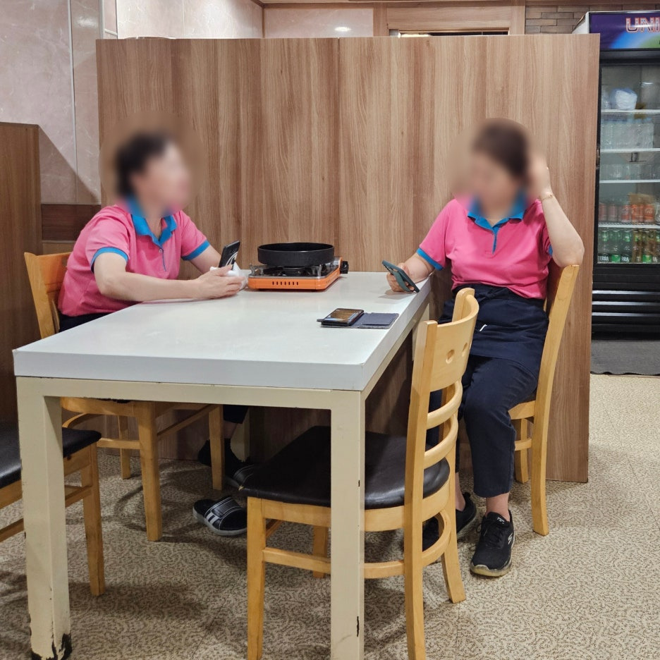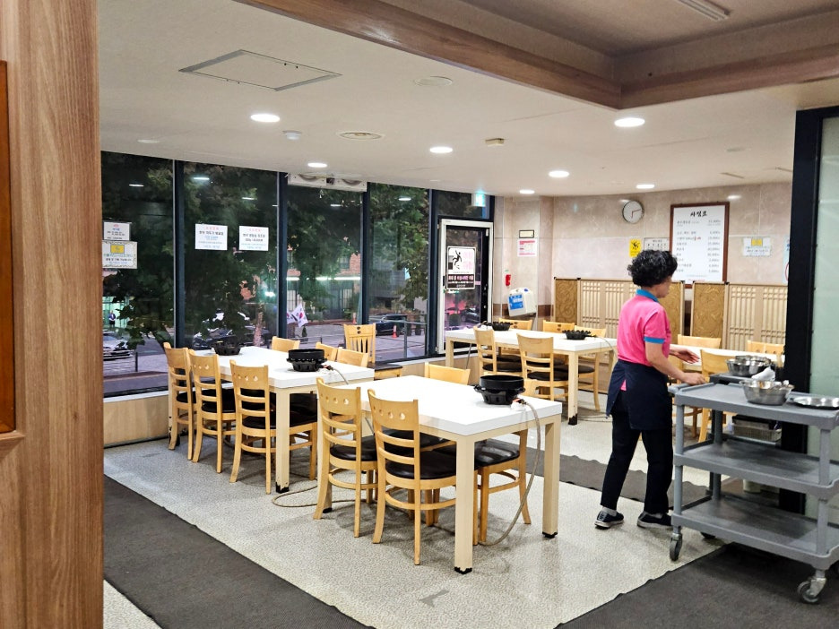 공휴일 오후 5시라 2층에는 아직 손님들이 그리 많지 않았다. 서빙을 해주시는 여사님들도 아직은 한가한 듯 자리에 앉아 담소를 나누는 모습. 조금 있으면 다들 엄청 바빠지시겠지.