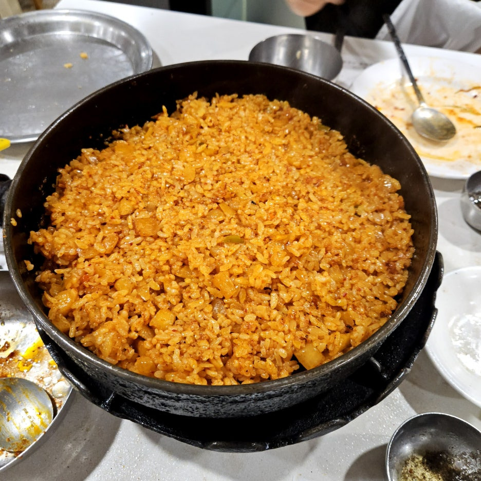 다시 한번 더 내어주신 콩나물국과 함께 깍두기 볶음밥을 미친 듯이 먹는다. 마지막은 불판을 잘 긁어서 누룽지까지 완벽하게 끝내면 된다.