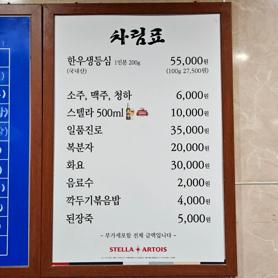 메뉴는 단 하나. 한우 생등심 1인분 55.000원. 다행히도 15개월 동안 가격이 오르지 않았다.