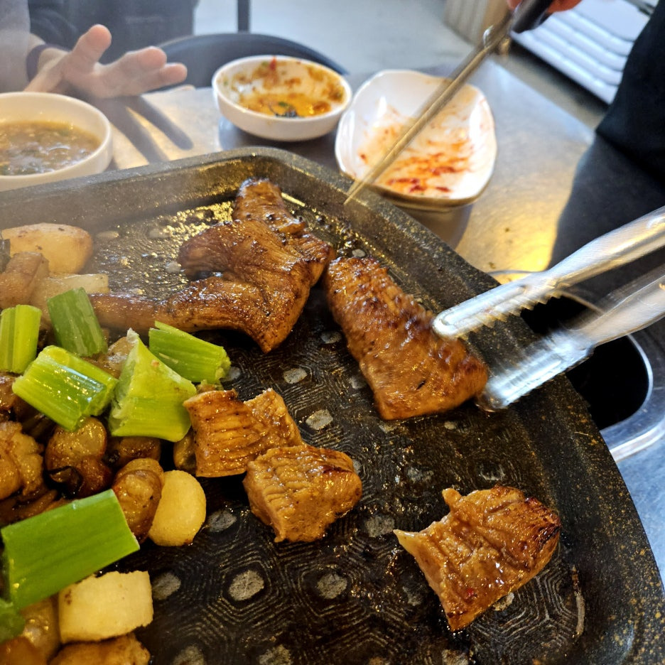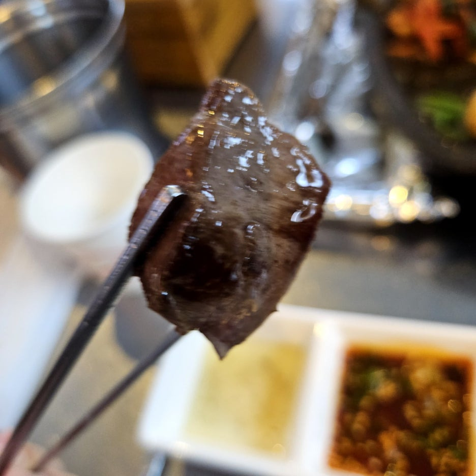 이제 딱 하나 남은 부위인 특양을 1인분만 추가했다. 역시나 바쁘신지 바로 불판 위로 들어가 버리는 특양.