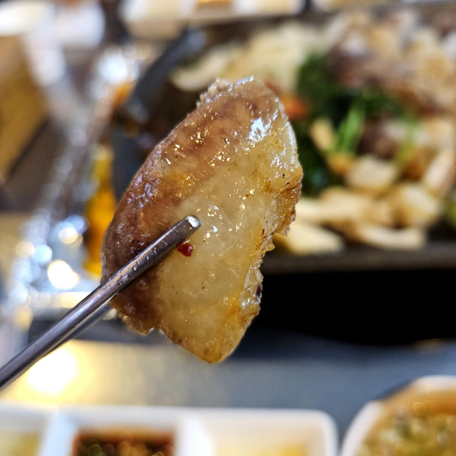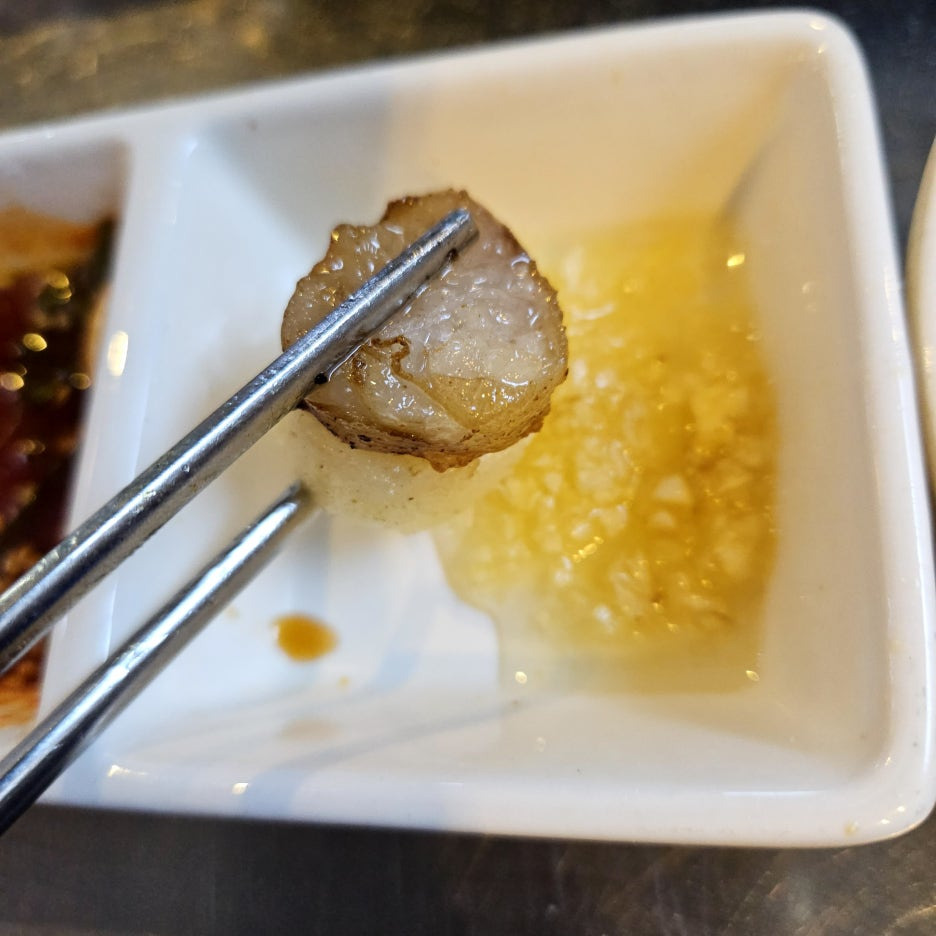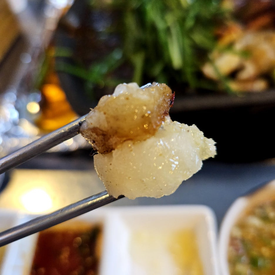 그다음, 막창. 아~~ 이건 아니다. 너무 삶아진 느낌이 드는 식감이다. 물컹한 느낌? 원래 막창은 한쪽은 기름지고 다른 쪽은 쫄깃한 식감으로 먹는 부위인데, 내가 원하는 형태로 조리가 되지 않았다.