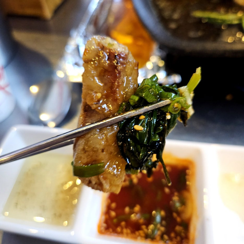 그래서 곱창을 부추와 함께. 부추의 질긴 식감이 곱창의 고소함에 잘 어울린다. 질긴 부추로 인해 곱창을 여러 번 씹게 만들어줘서 고소함을 더 느끼게 해주기 때문.