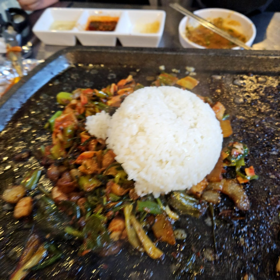 따로 볶음밥이 메뉴에 있지 않아 주문한 공깃밥 1개. 메뉴에는 양밥도 있었지만 그냥 조금 남은 재료들을 직접 볶아 먹기로.
