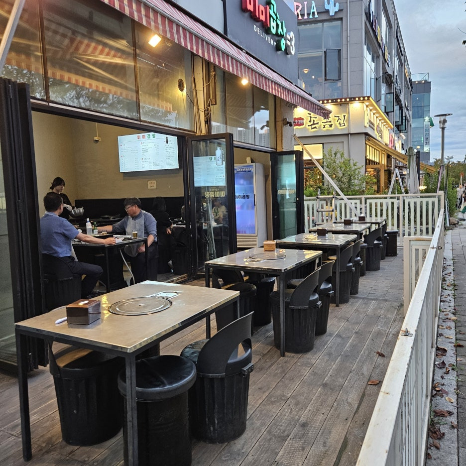 야외 자리에는 불판이 없어서, 음식을 구워 먹을 수 없고, 조리된 음식을 받아서 먹어야만 한다고 한다.