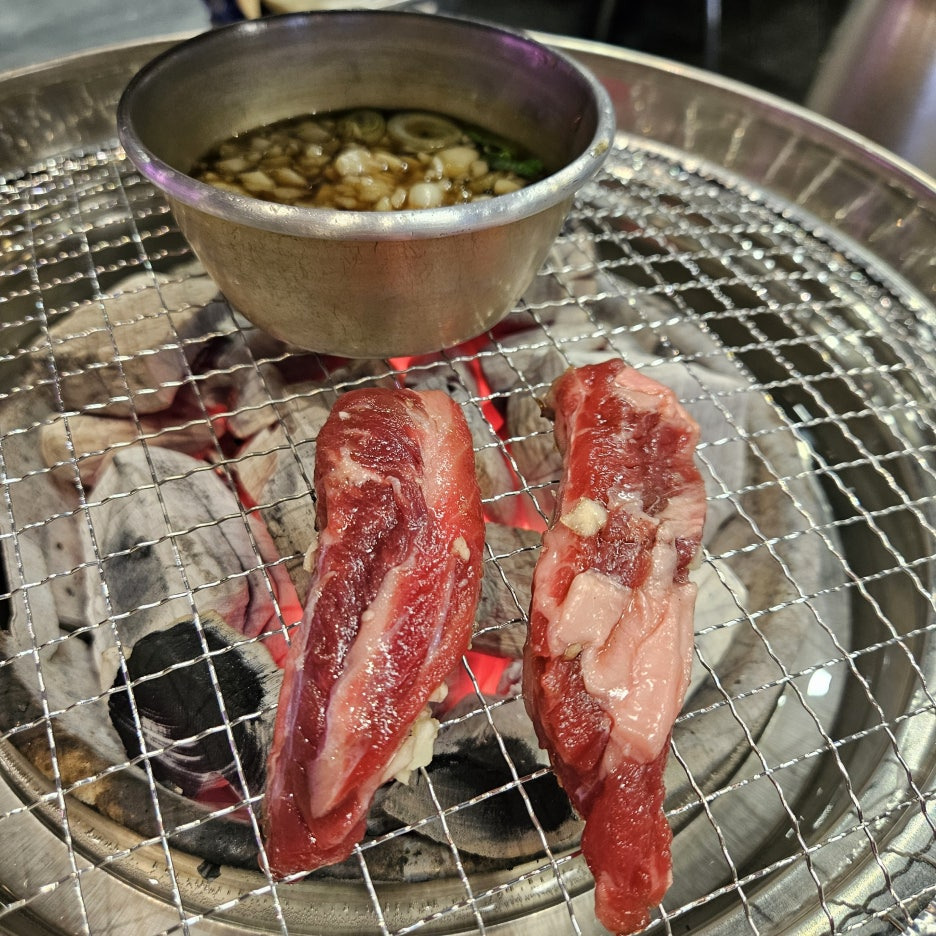 첫 점은 소금으로만 먹어보자. 음~ 맛있다. 이 가격에 이 맛이라면 완전 합격이다. 지방질도 좋고 고기 육향도 괜찮다. 살짝 질긴 부위가 씹히긴 하지만 오히려 그런 부분은 식감을 느낄 수 있는 것이라 할 수 있겠다.