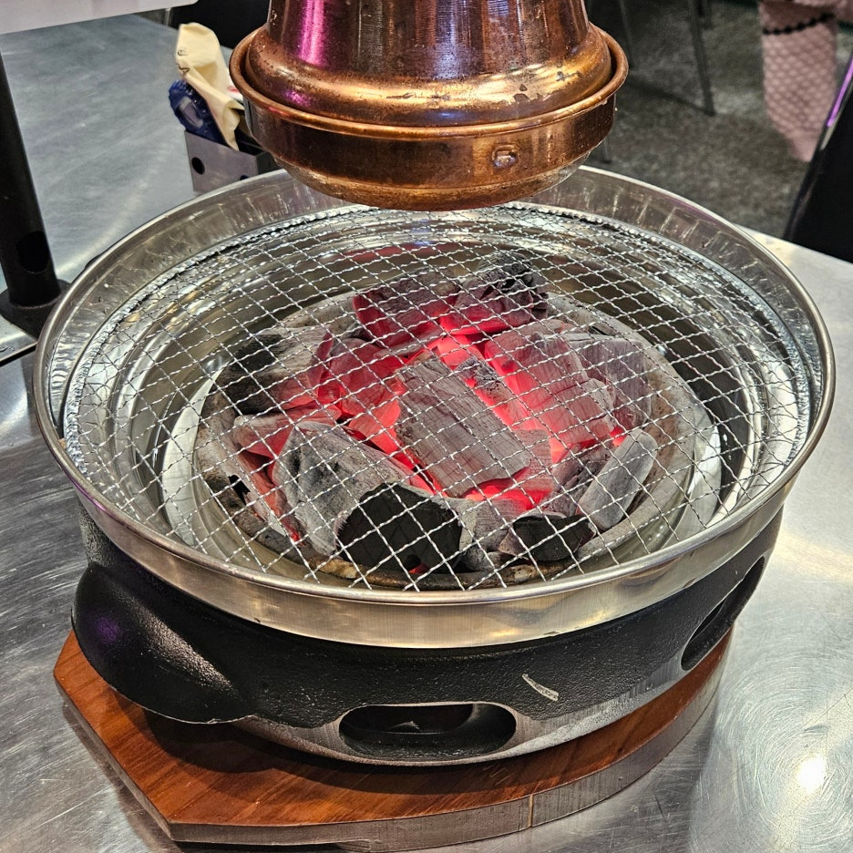 처음부터 숯에 올려 끓였던 바로 이 녀석이다. 이름을 알려주셨는데 까먹었다. 고기에 올라가 있던 마늘을 양념장에 넣고 숯에서 한번 쫙 끓인 후 찍어 먹는 소스다.