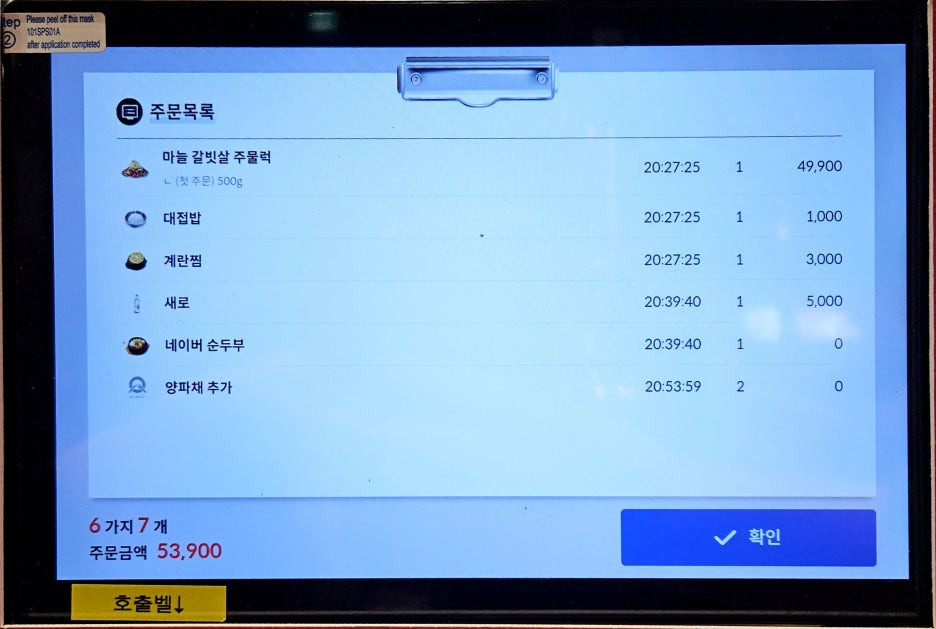 그리고 사진을 못 찍었는데, 공깃밥인 대접밥을 주문했던, 1000원이라고 하기에는 말도 안 되는 양의 밥이 나왔다. 다른 집의 두세 배 정도 되는 완전 머슴밥이었다. 모든 주문은 태블릿으로 할 수 있고 사이드 음식 및 각종 반찬들도 태블릿으로 할 수 있어서 편리했다.