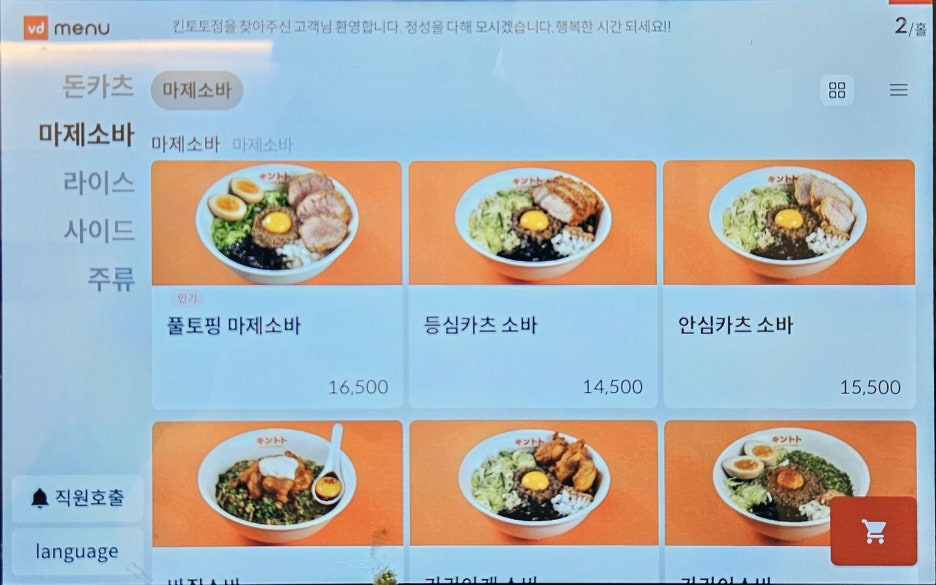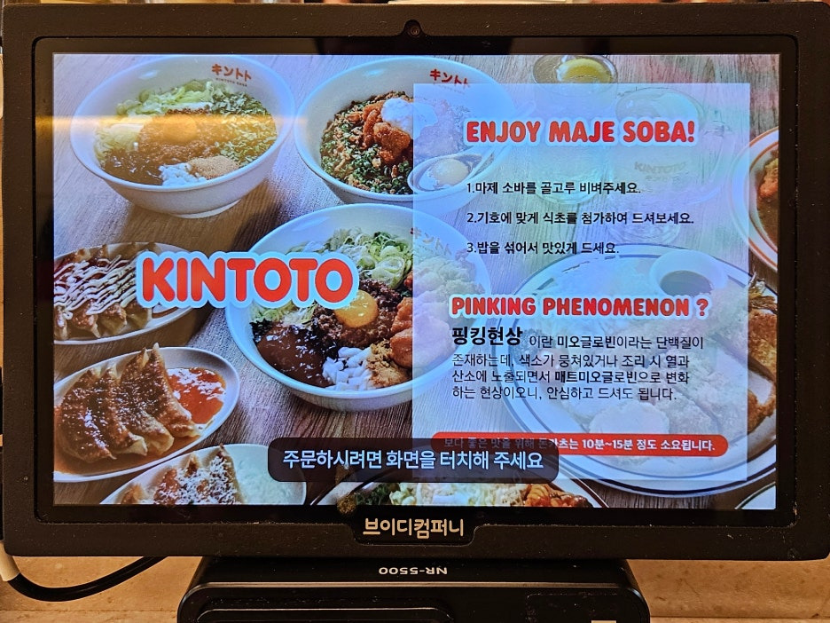 두 개의 메뉴를 주문했다. 안심카츠 소바와 등심 카츠 소바. 지금까지 먹어본 마제소바는 이렇게 다른 토핑이 거하게 올라가는 것이 없었기에 조금 기대를 해본다. 특히, 킨토토는 돈가스를 따로 판매하는 곳이니, 그 퀄리티는 좋지 않을까 하는 마음도.