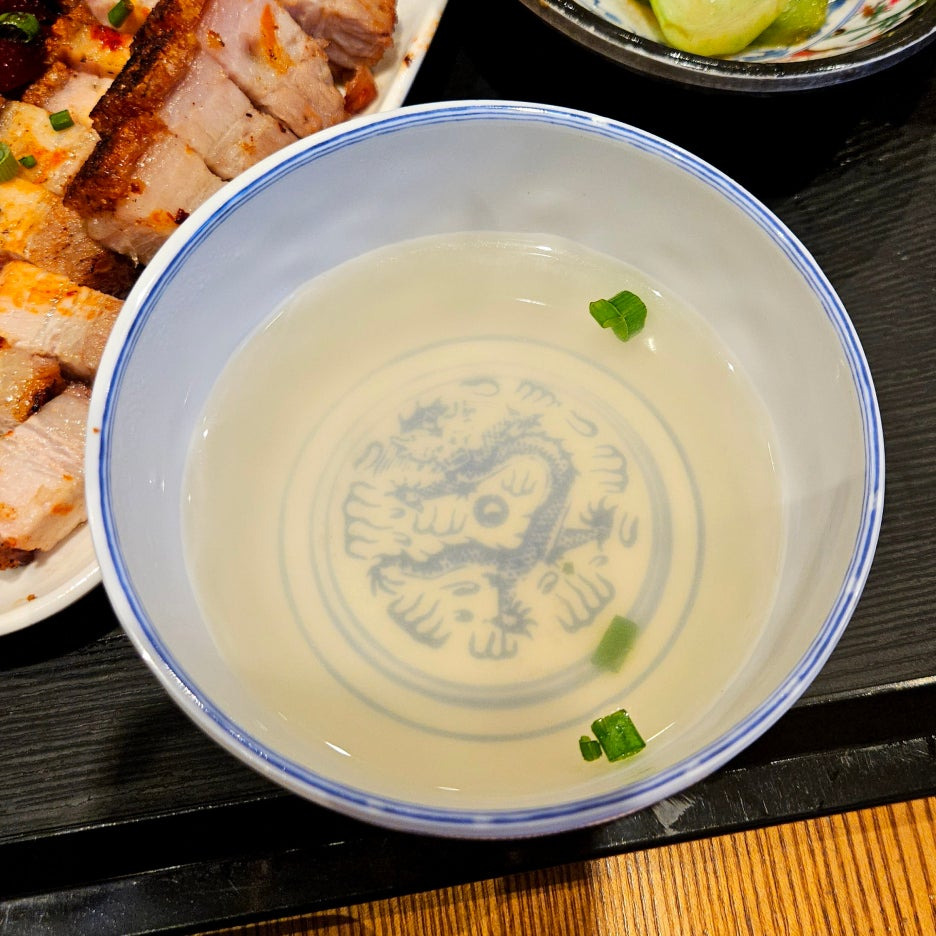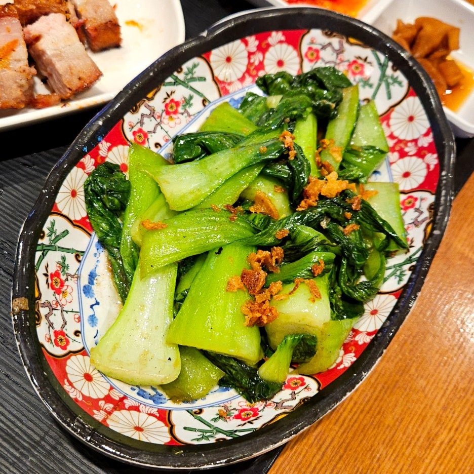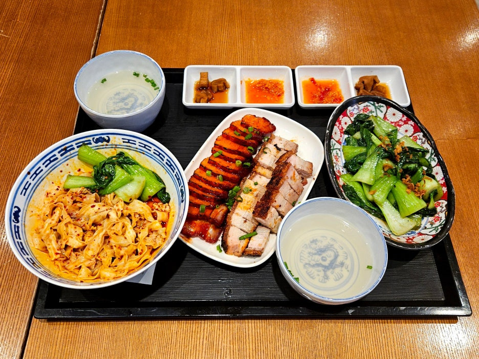 광동 차슈와 로스트 포크로 구성되어 있는 반반 콤보 플레터와 라유 누들 단품, 그리고 청경채 볶음을 주문했다. 국물도 함께 나오는 게 좋았다.