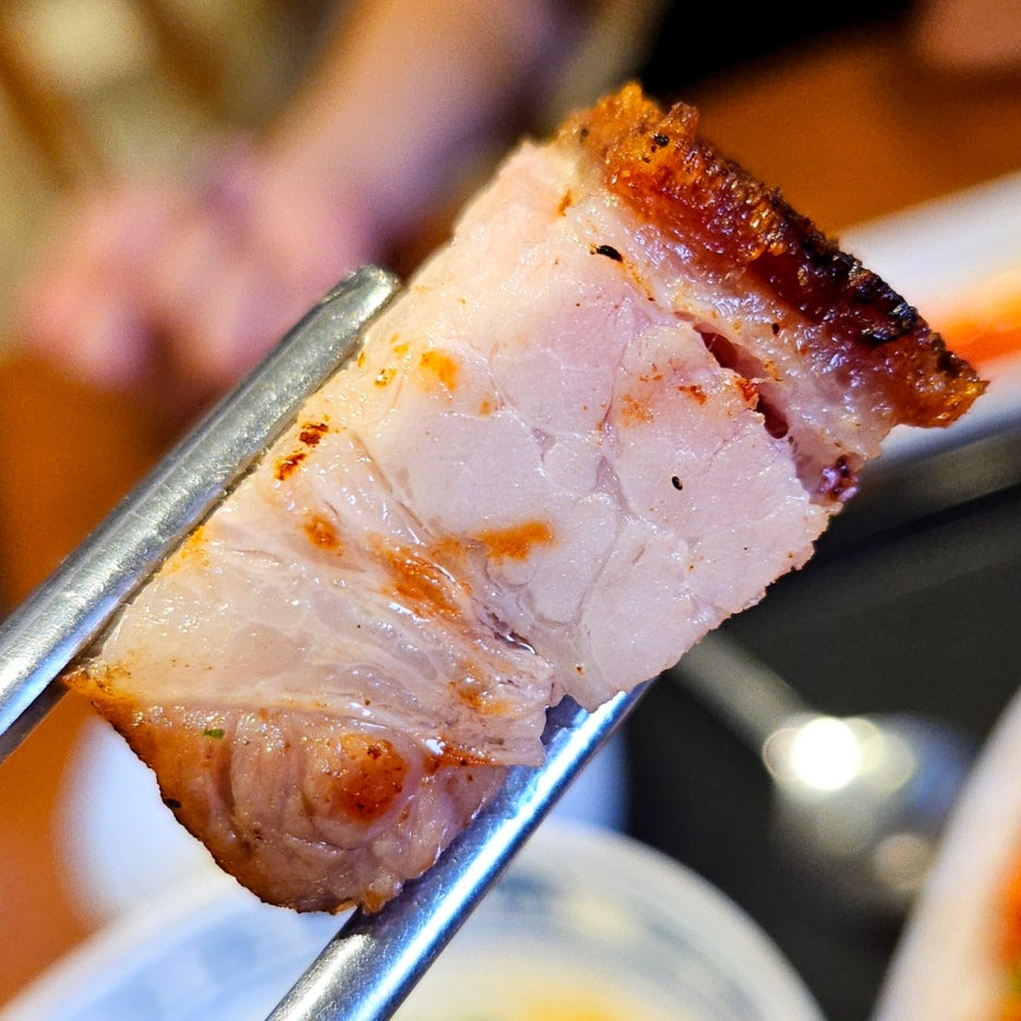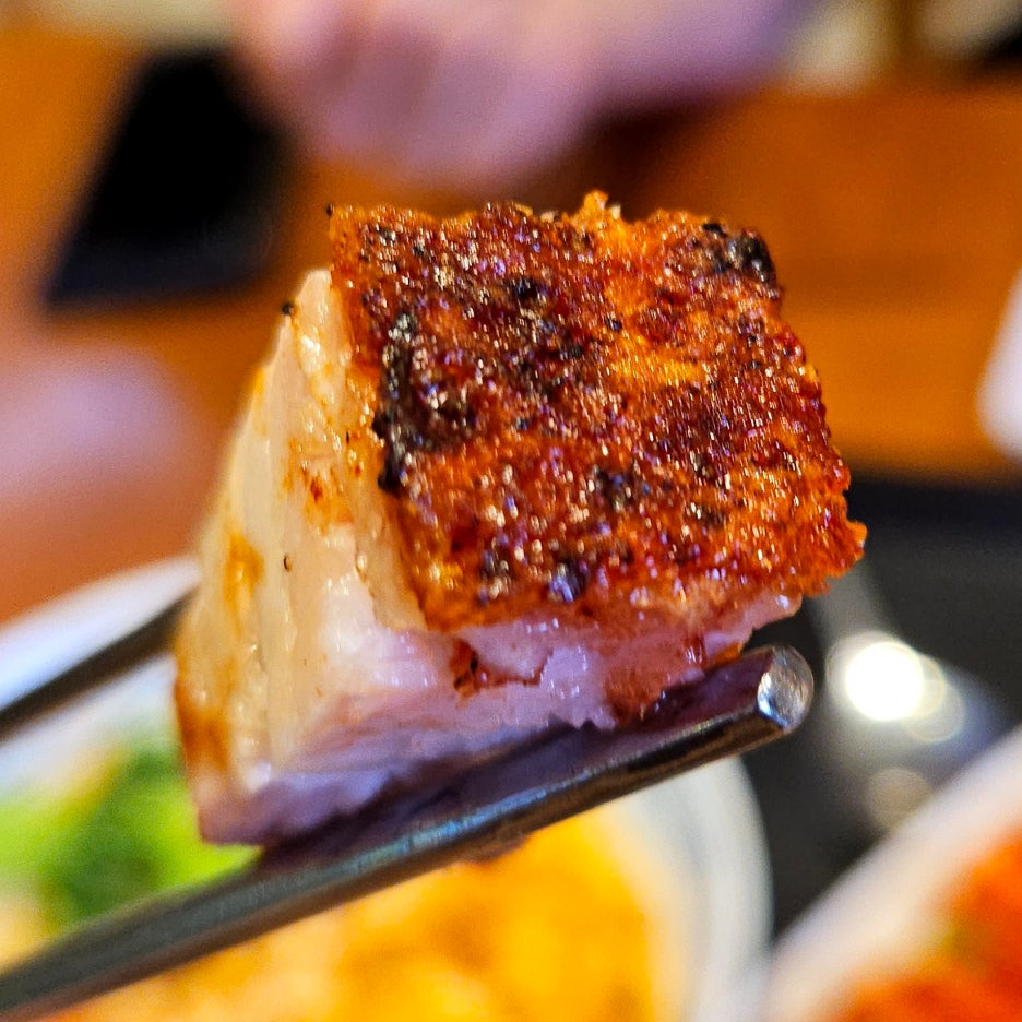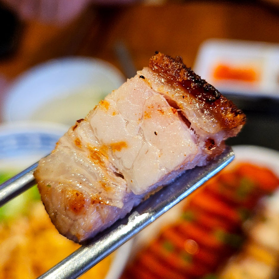 바삭하게 구워진 돼지 껍질도 아주 훌륭해 보인다. 참고로, 기름을 붓거나 기름에 넣어서 튀기는 것으로 생각하기 쉬운데, 실제로 만드는 모습을 유튜브에서 보니 숯으로 오랜 시간 동안 굽기만 하는 것이었고, 돼지고기의 기름이 올라와서 튀긴 것 같은 모습으로 보이는 것 있었다.