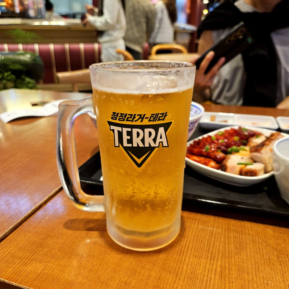 고기를 먹으니 맥주도 한 잔. 생맥주는 5,800원으로 비싸다. 하지만 아주 시원해서 좋긴 했다.