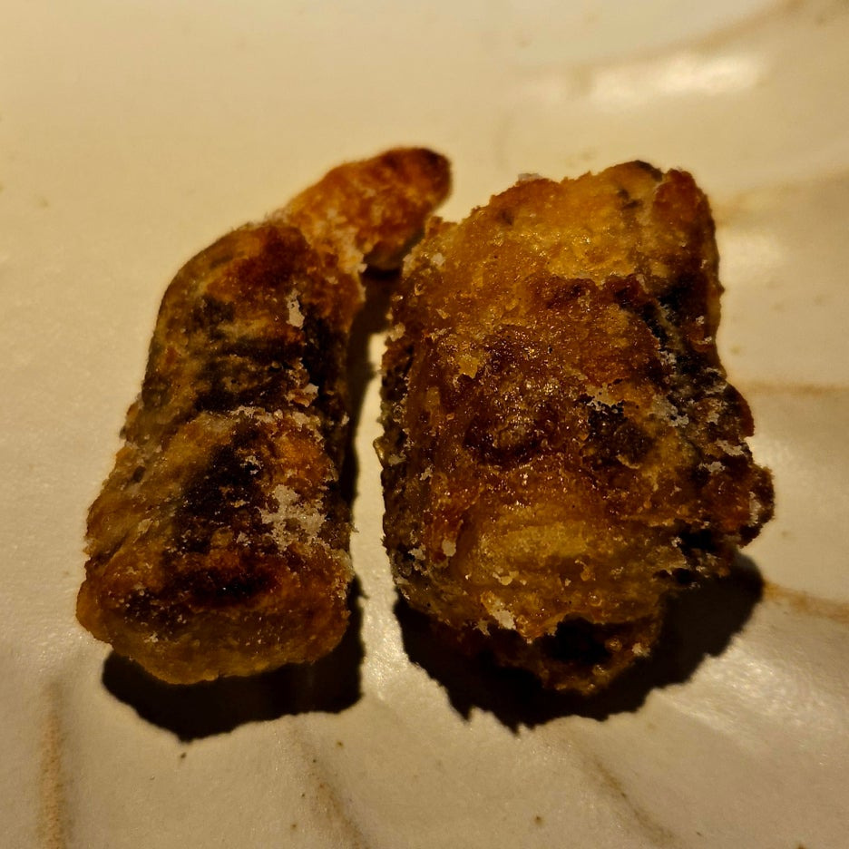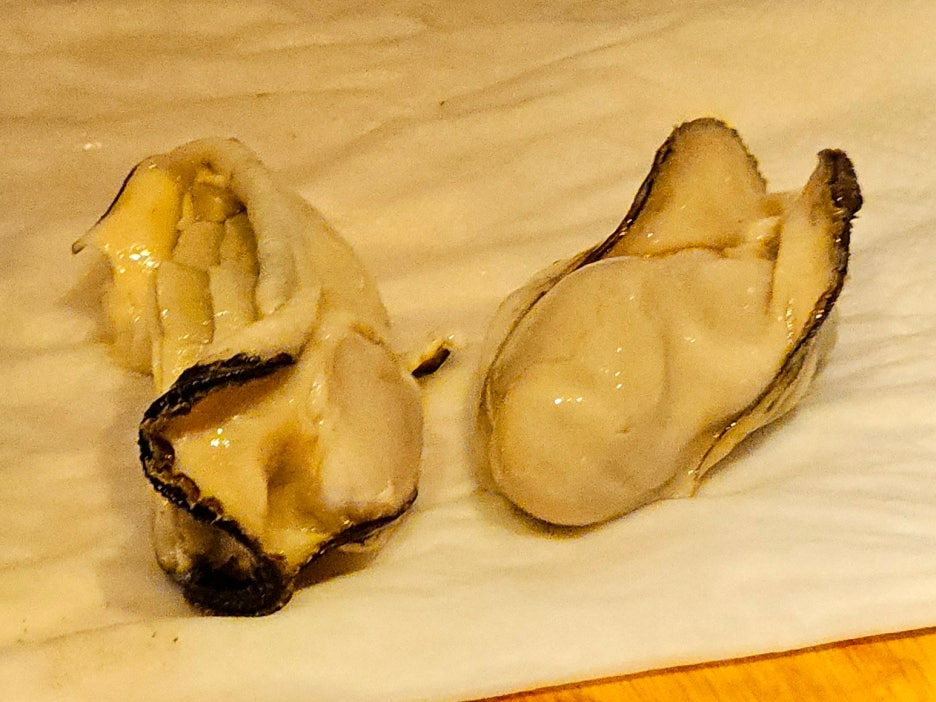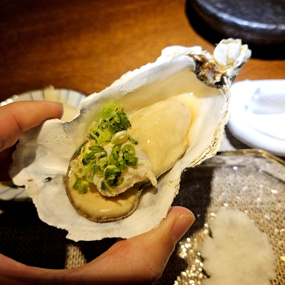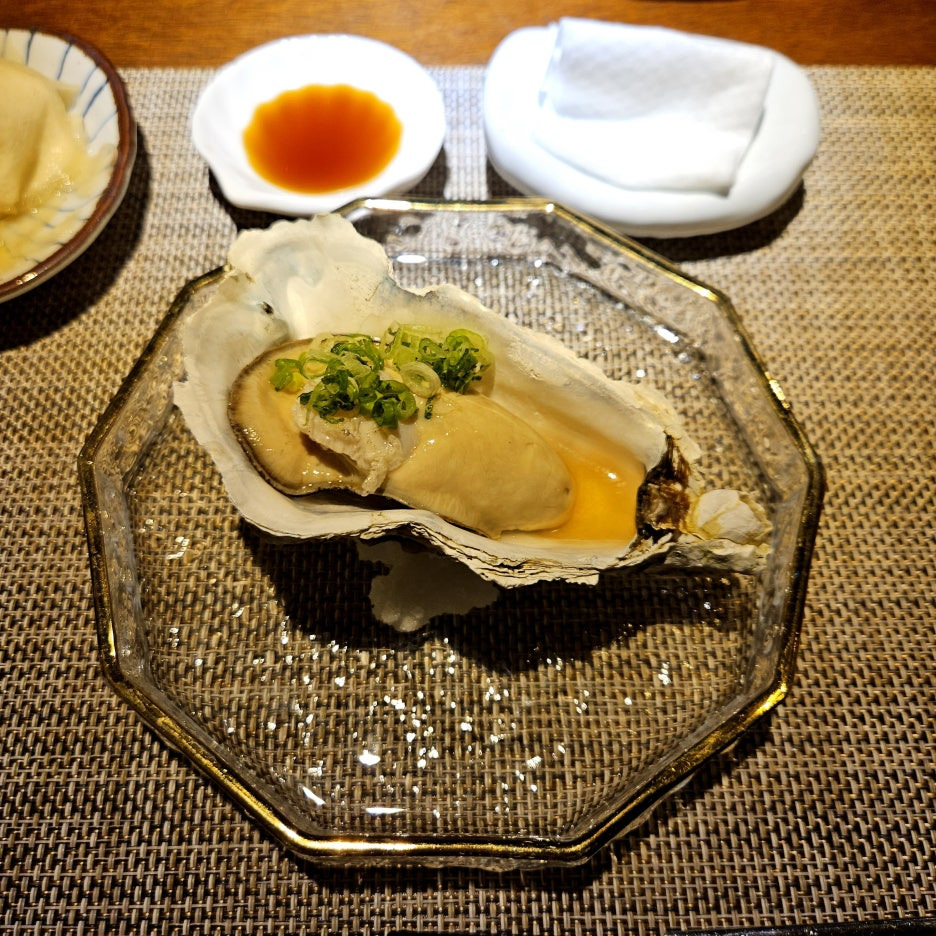 손으로 집어서 가츠오부시 소스와 함께 한 번에 꿀꺽. 아직 굴 향은 조금 덜한 것 같다. 그래도 통통한 식감이 아주 좋았다.