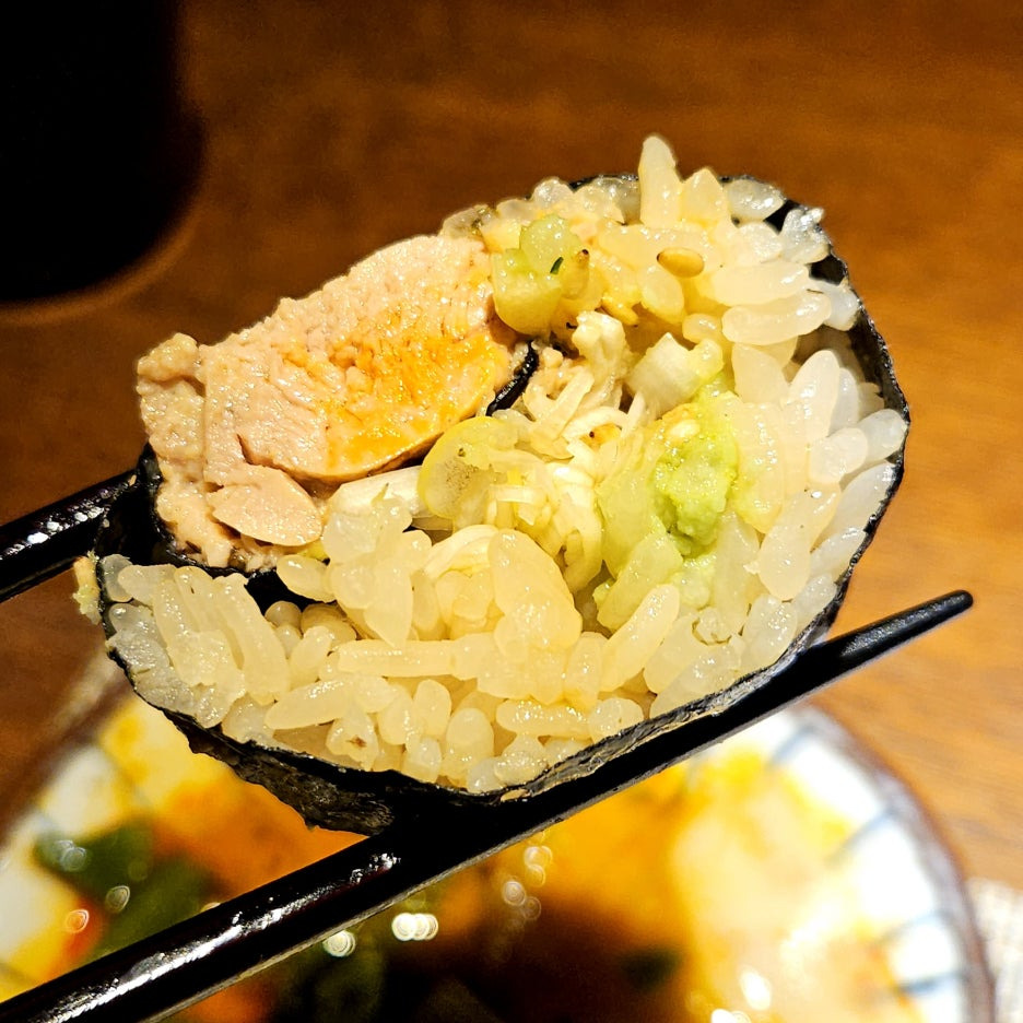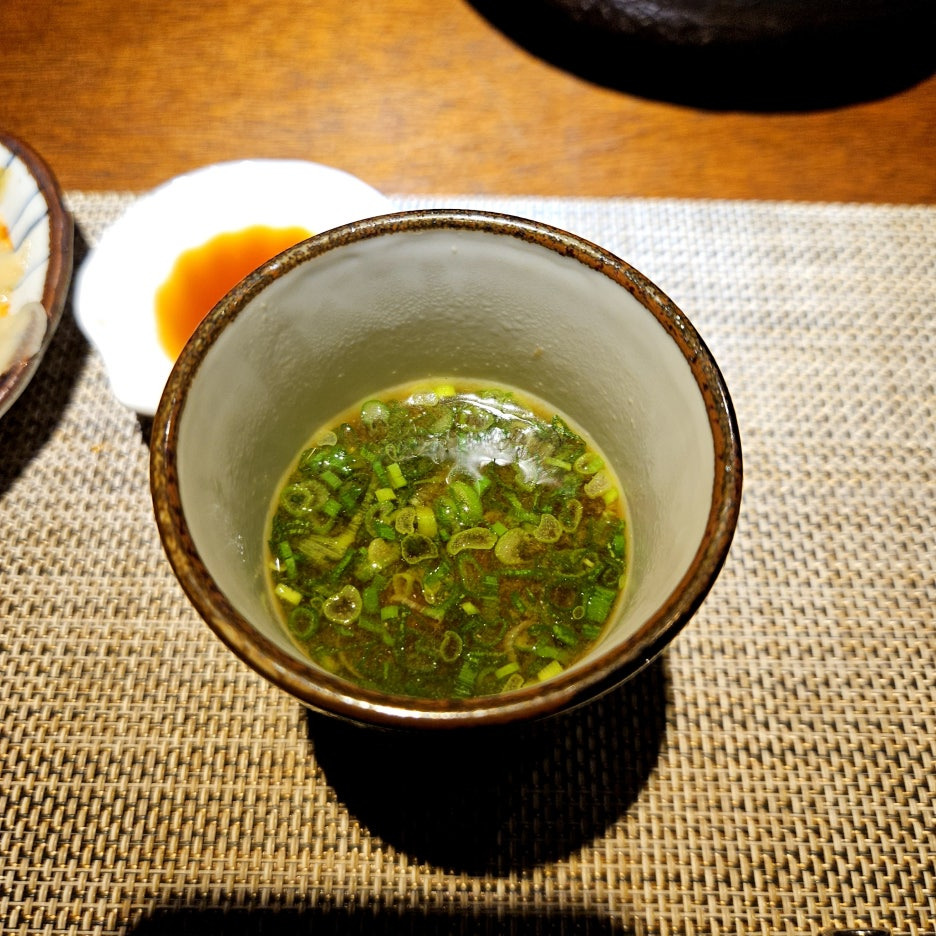 파와 아귀 간 그리고 밥과 김. 안키모는 부드럽게 씹힌다. 고소함은 극에 달하면서 쌀의 단맛과 잘 어우러져 입안에 퍼지는 최고의 맛.