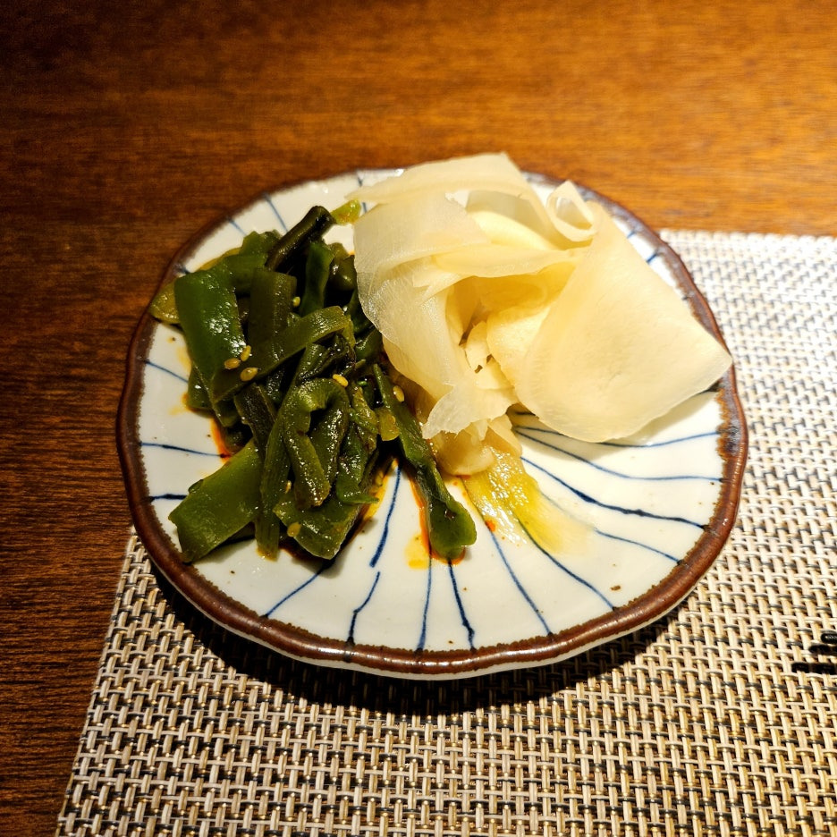 츠케모노는 궁채무침과 생강 가리 두 가지. 궁채 무침이 아주 맛있어서 여러 번 리필해 먹었다.