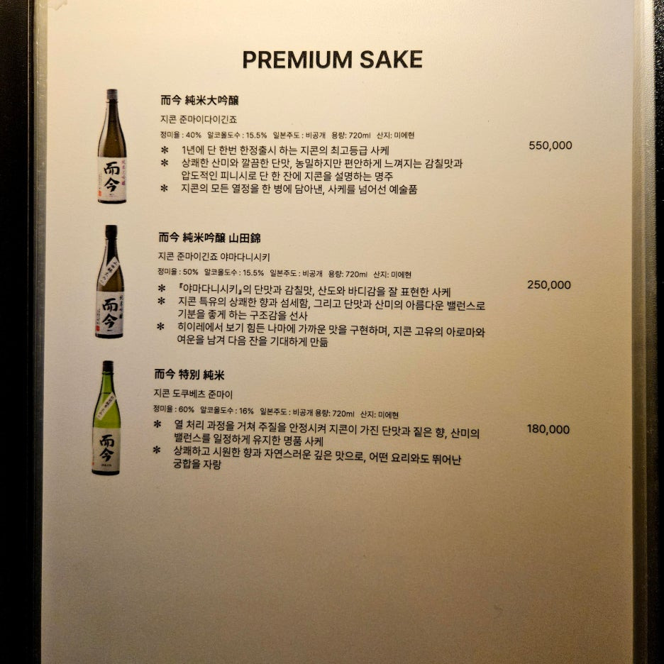 영업시간: 런치 6만원 (12시) / 디너 11만원 (1부 6시, 2부 8시)
